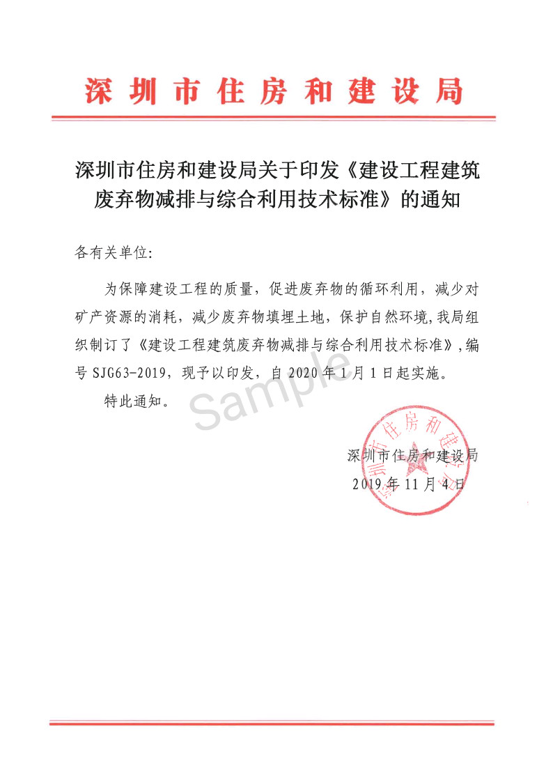 自2020年1月1日起,深圳市住房和建設(shè)局制訂的《建設(shè)工程建筑廢棄物排放限額標(biāo)準(zhǔn)》SJG62-2019(以下簡稱《限額標(biāo)準(zhǔn)》)和《建設(shè)工程建筑廢棄物減排與綜合利用技術(shù)標(biāo)準(zhǔn)》SJG63-2019(以下簡稱《技術(shù)標(biāo)準(zhǔn)》)正式實(shí)施!